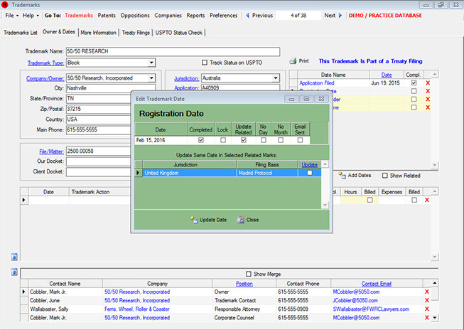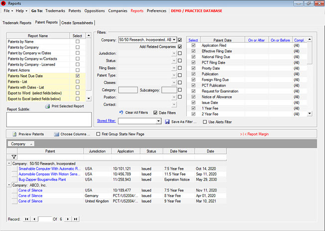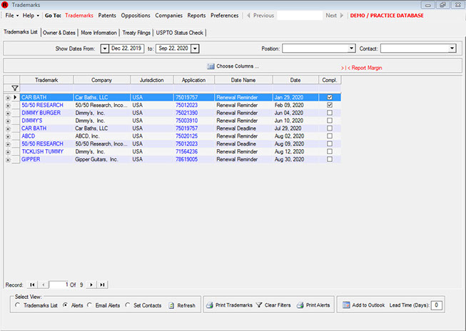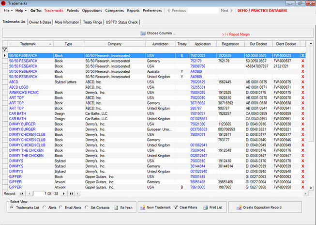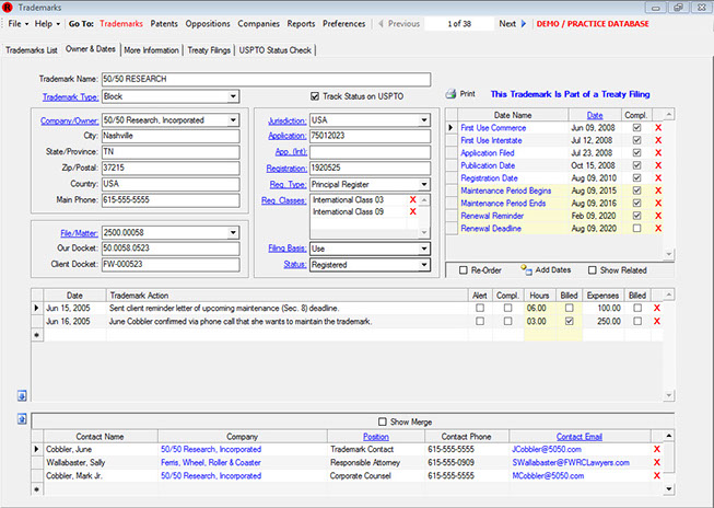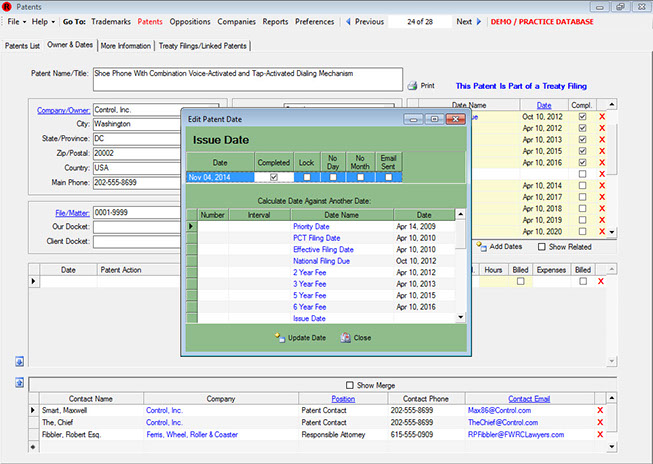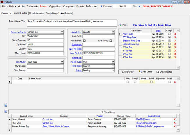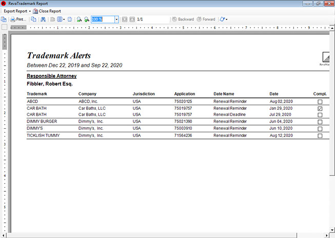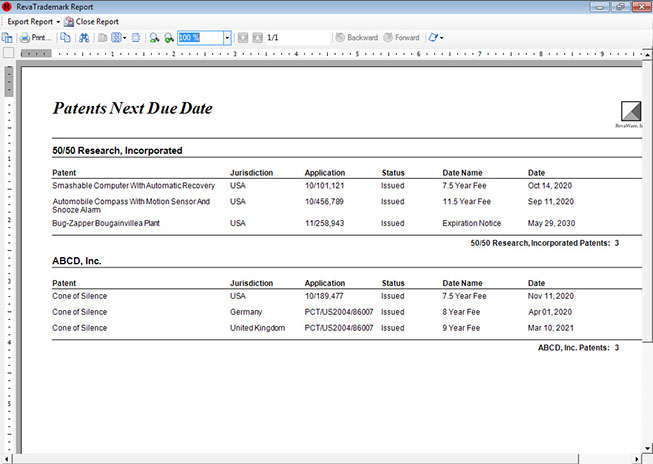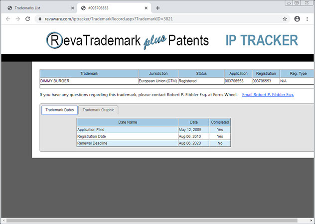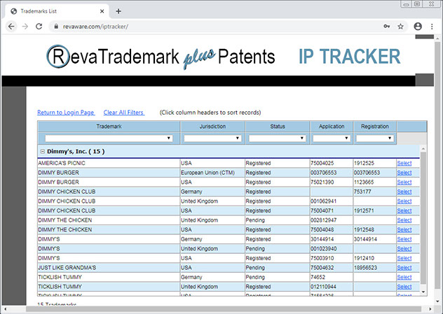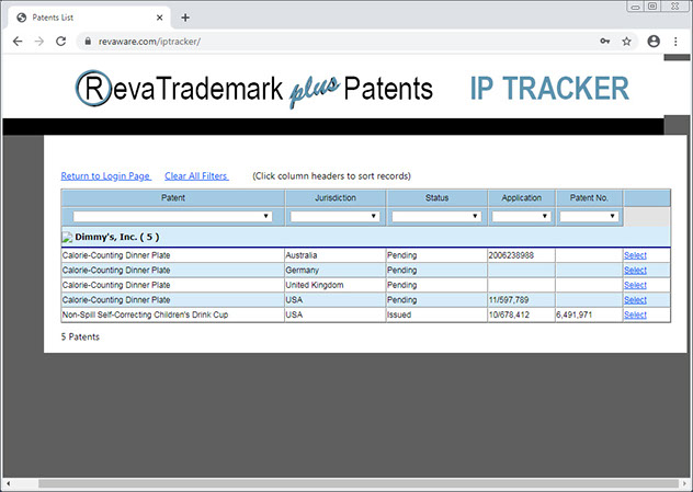 With the RevaTrademark IP Tracker option, your clients can view their patent and trademark due dates and other information on the web. You don’t need a web server, a web programmer or an IT expert. You simply create a login and password for each client in the RevaTrademark software. You determine which clients can view their data online, and which due dates appear.